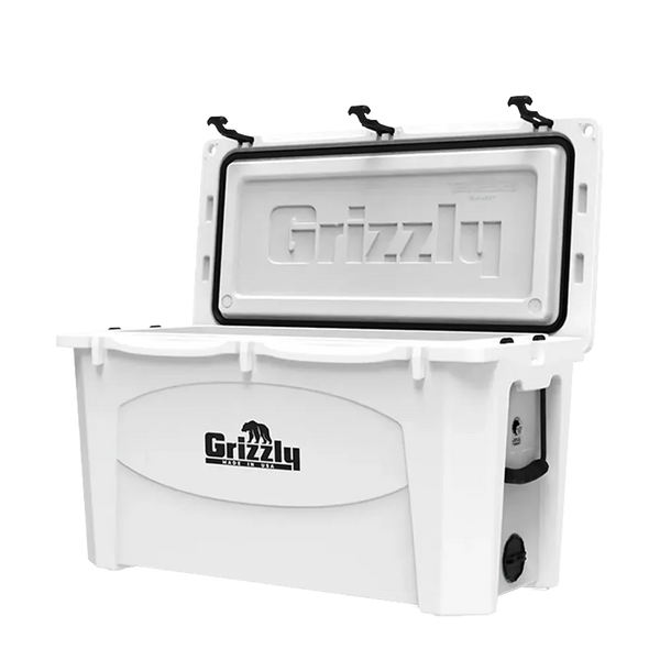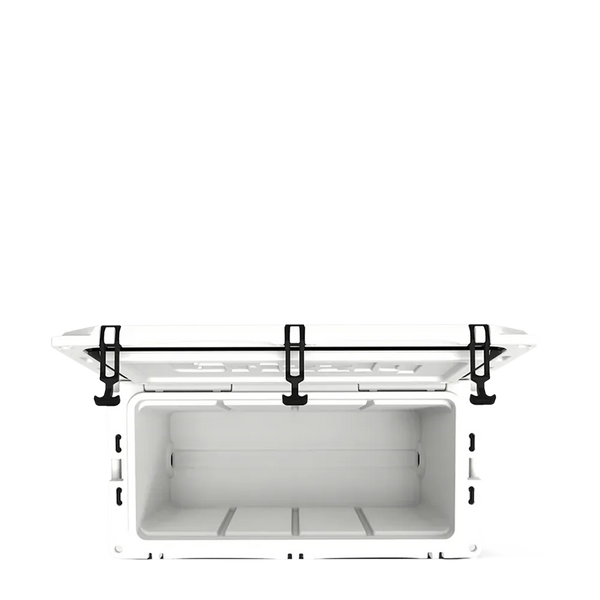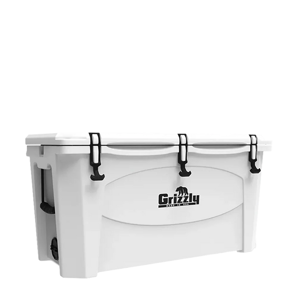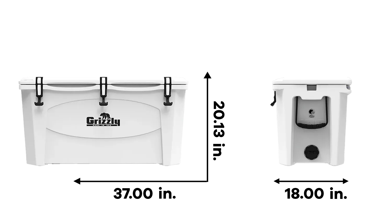 The Grizzly 100 QT Cooler is the ultimate hard cooler champion for your biggest camping adventure, keeping everyone cool at the worksite, or seasonal off-road hunting trips. The durable rotomolded construction and environmentally friendly pressure-injected insulation will safely chill and store up to 30 pounds of ice, drinks, and food. The IGBC certified design BearClaw™ lid latches provide a secure closure and protects from outside temperature. Load up your cooler when you’re ready to travel with molded-in heavy duty handles or the nylon rubber sleeved rope handles. Keep it in place with the 2” tie down slots and non-slip non-marking rubber feet. This high-performance cooler can take on any journey with ease, making it the optimal travel companion.