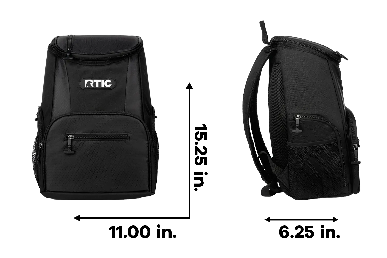 The RTIC Day Cooler Backpack is perfect for toting your on-the-go items out to the ballfield, gym, pool, track, sports practice or errands! This backpack has plenty of room to store what you need to keep cold for up to 24 hours. Two mesh side pockets for easy access & storage of water bottles. The top lid has an interior mesh pocket perfect for dry snack bag storage. The outside is made of heavy-duty polyester with an interior utilizing high density insulation. We recommend using (2) Medium RTIC Ice Packs to keep items cold. The soft liner is made of FDA-approved food contact material that's safe for use with food and drinks. Antimicrobial, product-protecting properties are built into the flexible lining to resist odor, mold and mildew, making it easy to clean between uses.