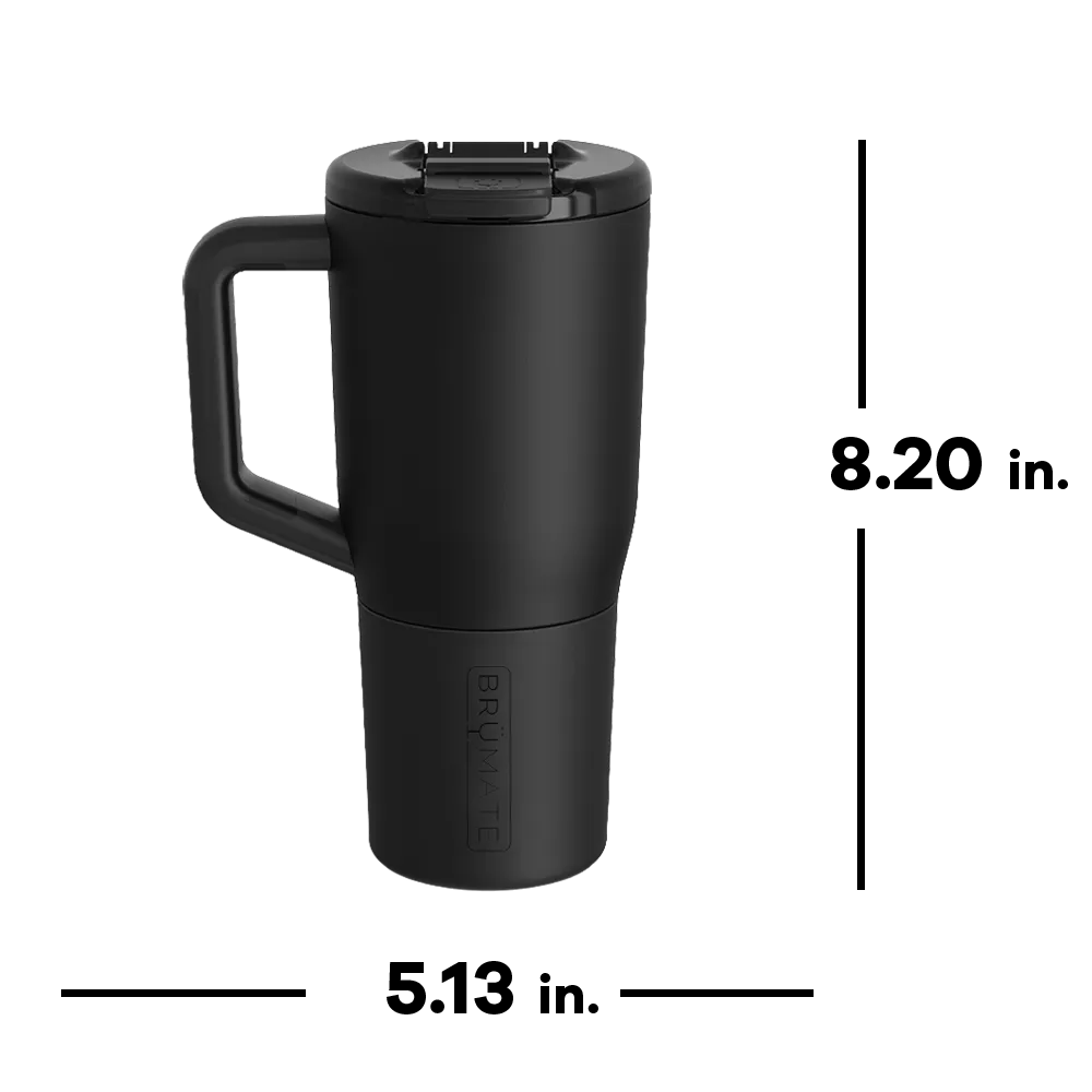 The Brumate Muv 25 oz is crafted with insulated stainless steel that will keep your hot, cold and carbonated beverages cold for over 24 hours and hot for 6. The new OctaLock™ threading system allows for 8 different drinking positions. Easily change between left and right handed orientation by pushing down and turning right. The large soft grip handle allows for a comfortable hold and is scratch-resistant. The cupholder friendly base is protected from dents and scratches with a removable silicone sleeve.