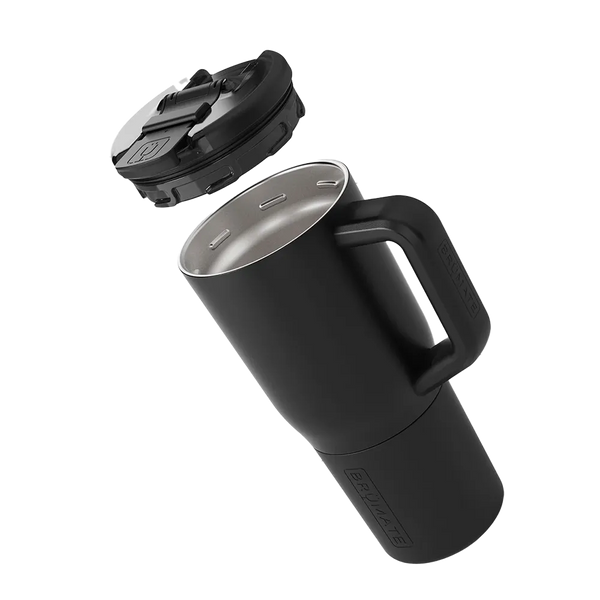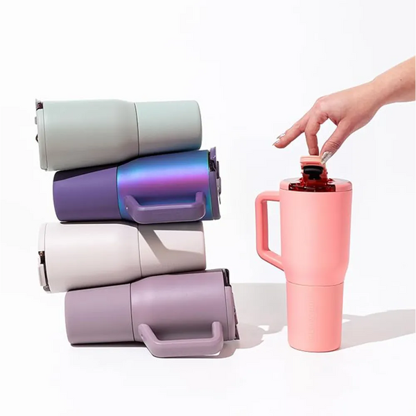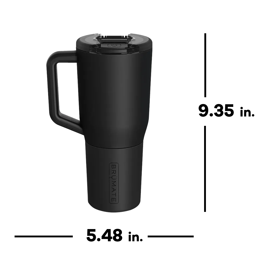 The Brumate Muv 35oz is crafted with insulated stainless steel that will keep your hot, cold and carbonated beverages cold for over 24 hours and hot for 6. The new OctaLock™ threading system allows for 8 different drinking positions. Easily change between left and right handed orientation by pushing down and turning right. The soft grip handle allows for a comfortable hold and is scratch-resistant. The cupholder friendly base is protected from dents and scratches with a removable silicone sleeve.