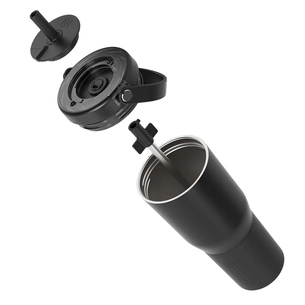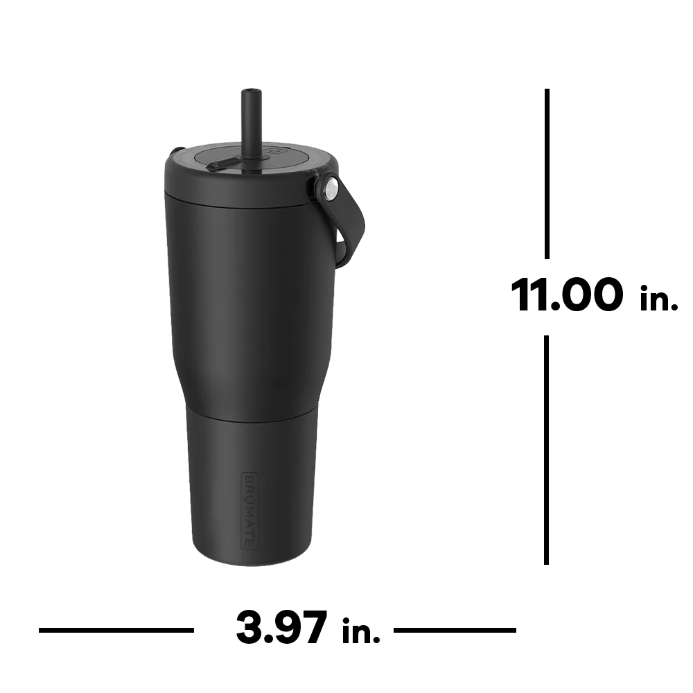 Fully lockable, leakproof and ready for the long haul, the Brumate Resa travel tumbler is built to take on your everyday. The insulated stainless steel keeps iced drinks and carbonated beverages ice cold for over 24 hours. The three-mode ÜTurn™ lid features an open to sip, locked and fully leakproof and centered for straw removal. Use the raised rubber grip on the top of the lid when changing modes to avoid touching the straw. The stainless steel straw eliminates plastic-use for clean drinking. Protect your tumbler from dents and dings with the removable silicone sleeve. The cupholder friendly base and comfort grip handle makes it simple to grab-and-go.