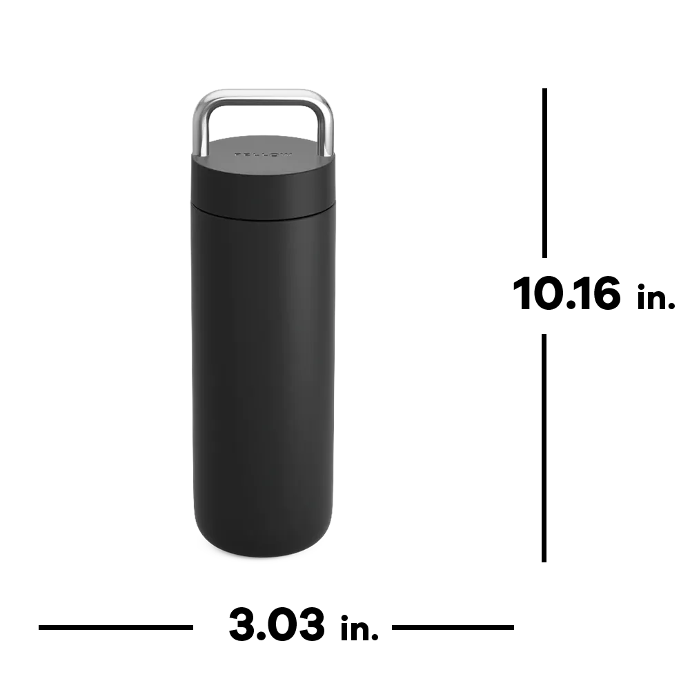 The Carter Carry Tumbler is a sleek tumbler that balances the smooth ceramic feel and true to taste ceramic coating with the high performance double wall vacuum insulation for superior temperature retention. The drinkable thin lip allows for easier sipping than other bulkier tumblers. Keep your coffee hot for 12 hours and daily hydration ice cold for up to 24. The spill resistant screw top lid includes a durable metal handle so you can grab and go with ease. From morning commutes to afternoon bike rides, this leakproof and cupholder compatible tumbler is ready to go with you everywhere.