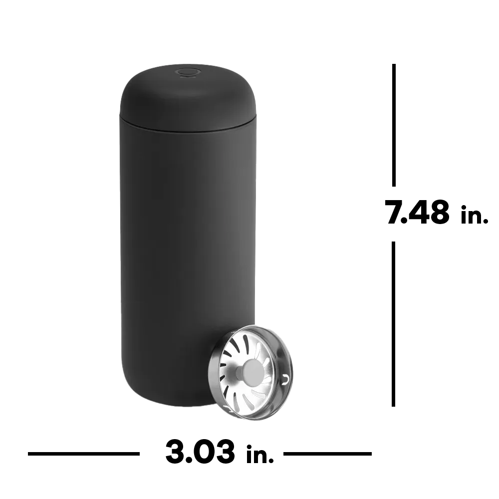 A combination of a refined coffee drinking experience and premium, modern design, the Carter Move Mug is the travel mug that focuses on amplifying the senses while also fitting your travel needs. The snap-in splash guard and slim width allows for ease of transport without the mess. The heat-lock stainless steel, double wall vacuum insulation will keep your drinks hot up to 12 hours and cold up to 24.