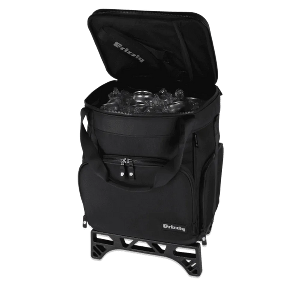 The Grizzly Drifter 30 is the wheeled, soft-sided champion for your bigger camping adventures, worksite cooler, or off-road hunting trips. The robust EVA foam insulation throughout, including the lid and molded base, and waterproof lining will safely chill and store up to 30 quarts of ice, drinks and snacks. There’s plenty of room for the essentials with the two large exterior storage pockets and additional storage pocket inside the lid. The heavy duty zipper provides a secure closure and protects from outside temperature. Use the Molle attachment system on the back for extra tools and gear. The two Grizzly Grip pockets for drinks make this cooler equal parts convenience and high-performance. With a waterproof polyester protective shell and non-skid base, the Drifter 30 is a tough performance to beat. Switch between the included rolling cart or the padded shoulder strap making this the optimal travel companion.