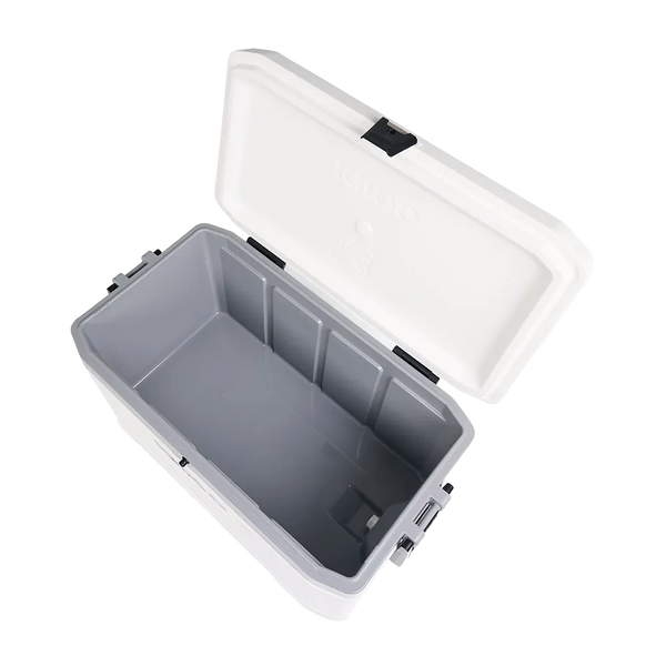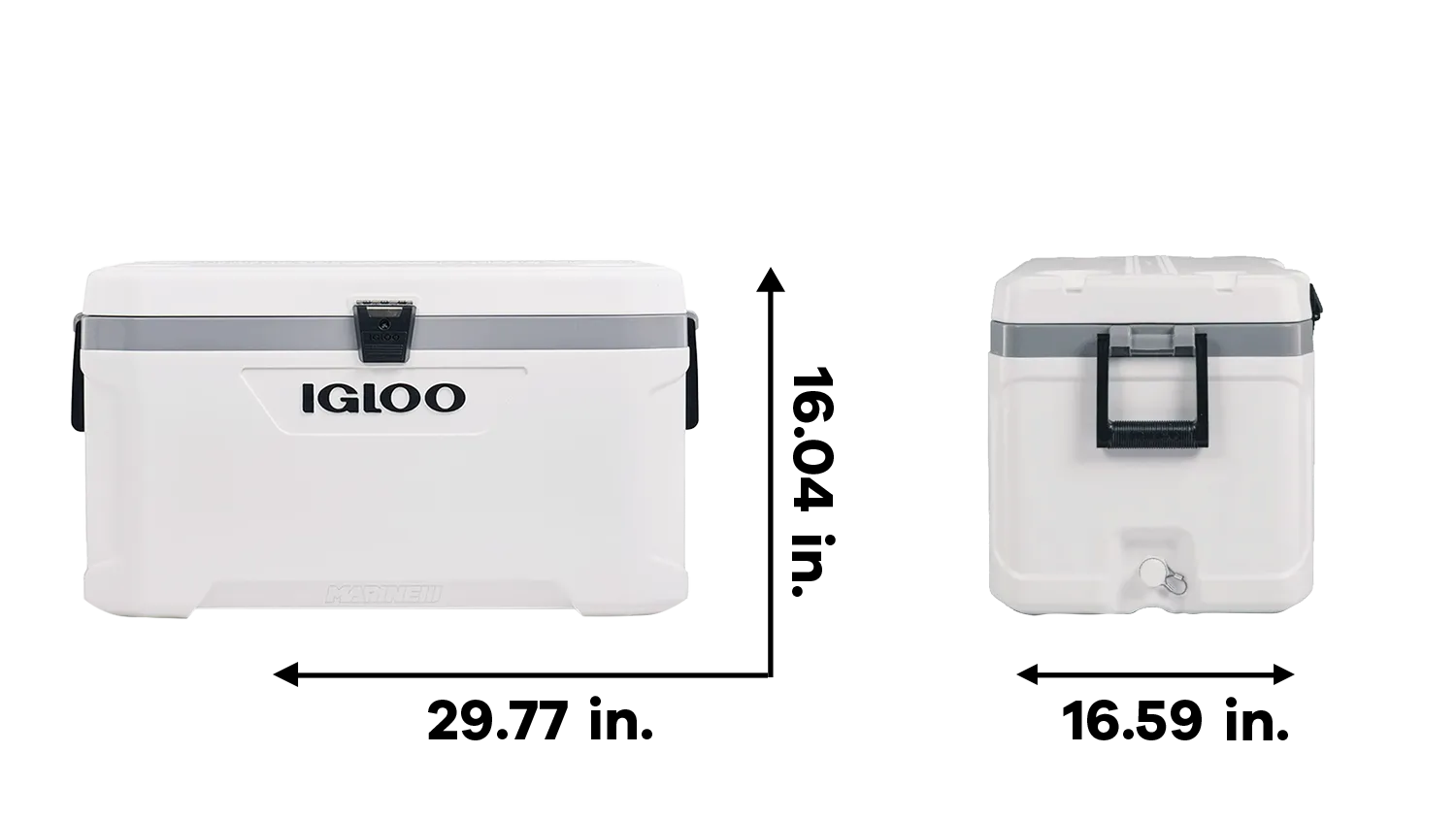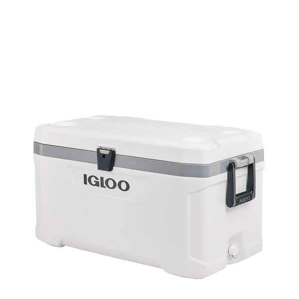 The Igloo Marine Ultra 70 QT Cooler is the dependable ice chest that takes on any adventure, from family camping trips to weeklong fishing tours. The THERMECOOL™ foam inside the body and lid is a cleaner, eco-friendly insulation that still delivers superior ice retention. Keep your drinks, snacks, and catch-of-the day’s ice cold all day long. The four self-draining cupholders on the lid makes it easy to grab your drink and not worry about spills and splashes. The rust-resistant stainless steel screws can withstand the wet, sunny and salty elements of the wild and the exterior UV protects against sun damage. Comfortably load and unload, even in wet conditions, with the non-slip swing-up handles and easily drain melted ice with the threaded drain plug that can hook up to your water hose for a faster tap.