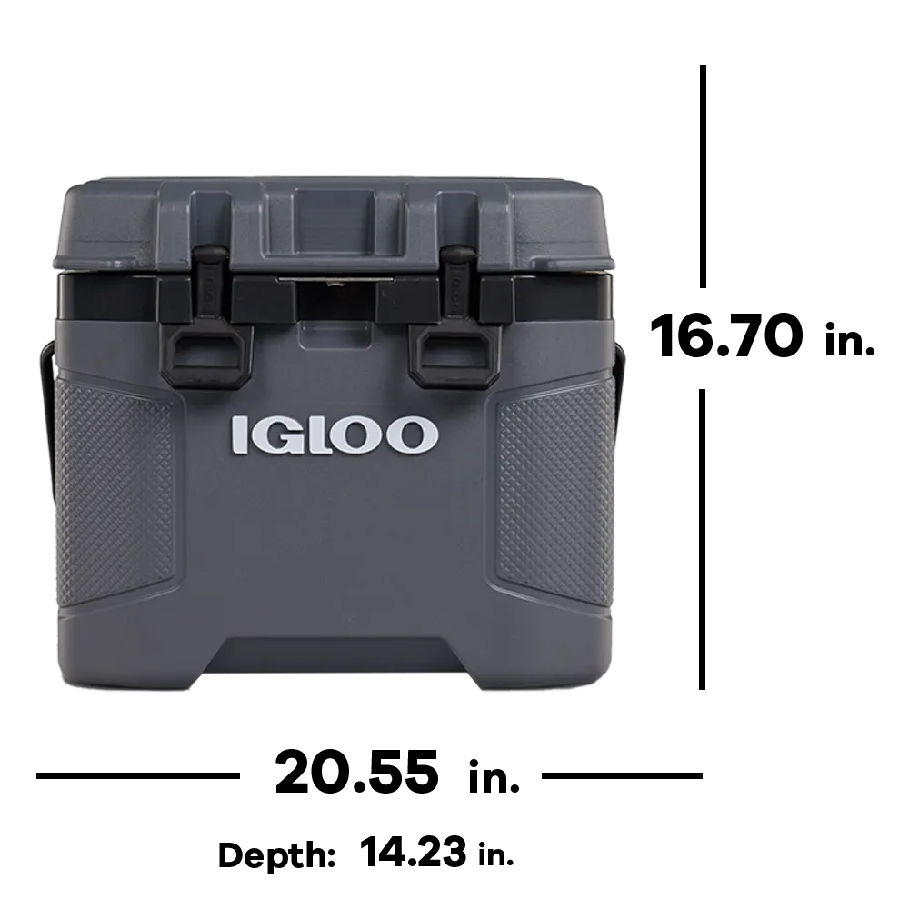 Rugged and adventure-ready, the USA made Igloo 25 QT Trailmate is built with heavy-duty blow-molded construction that securely locks in the cold. The extra-thick 1.5 foam insulation in the walls and insulated lid extends the life of your ice for days. The first Igloo cooler to feature the Sure-Lock™ rubber latches that can be easily cinched with two fingers for a secure closure. When opening your cooler, the reinforced and self-stopping hinges makes it easy to open and grab what you need without it slamming shut. The locking plate inside the lid includes a built-in bottle opener for when you’re ready to enjoy your first sip. Easily carry your new trailmate with the extra wide diamond-textured comfort grip.