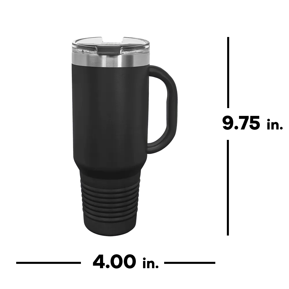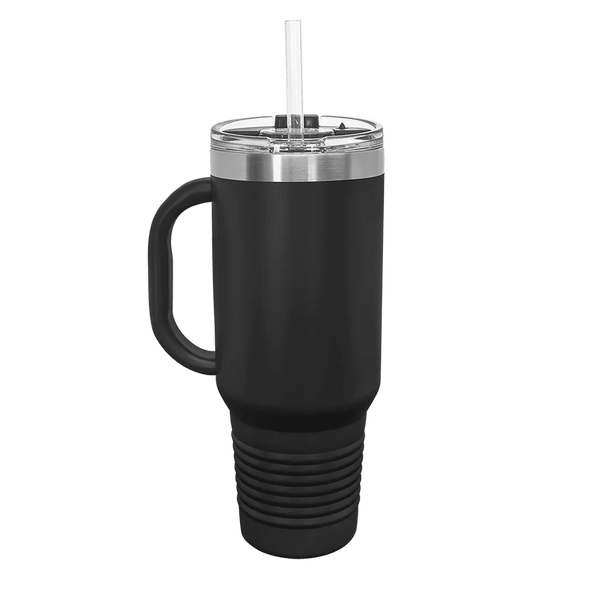 The Polar Camel 40oz Mug is built with the high-endurance 18/8 stainless steel that can hold heat or cold temperatures 2x longer than the average insulated mug. The snap lid opens up to an easy sip opening that can easily house the included straw. The comfortable hold handle and tapered base makes this mug extremely travel friendly. This mug tumbler comes in eight vibrant colors of powder-coated finish that laser beautifully. Perfect for employee gifts, usable awards, or fundraisers.
