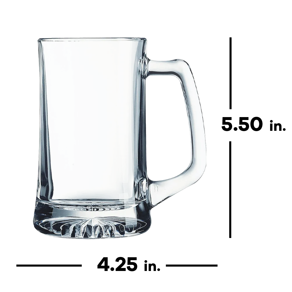 This beer mug is constructed of thick, solid glass that provides a satisfying weight and hand feel. The base is carved with a beautiful design that pairs tastefully with your custom logo. Perfect for promotional items, souvenir shops, or gifts for any occasion.