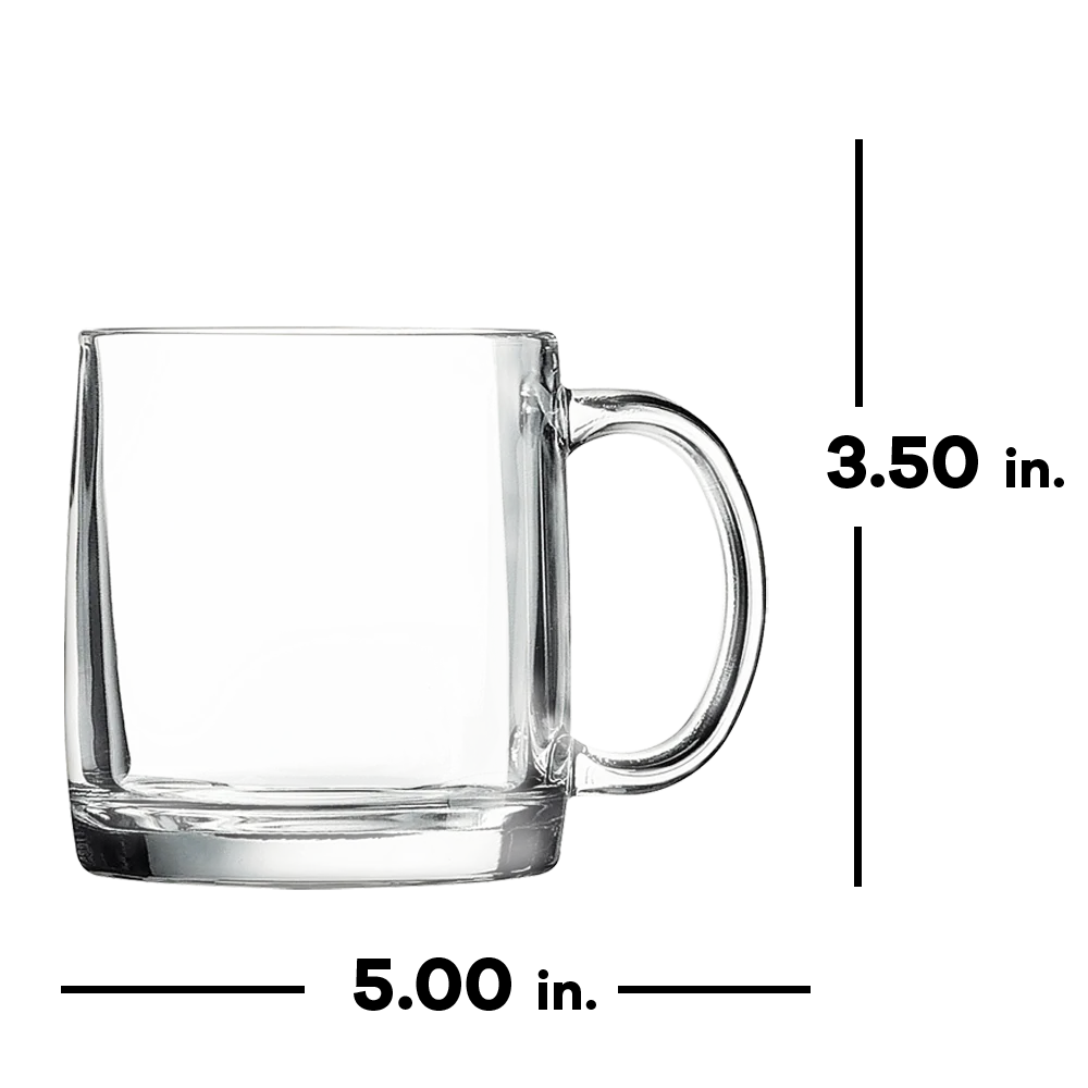 Enjoy your morning cup of coffee with this crystal clear glass mug. Constructed with a solid base and comfortable, smooth glass handle. Ideal for promotional items, souvenir shops or gifts for any occasion.