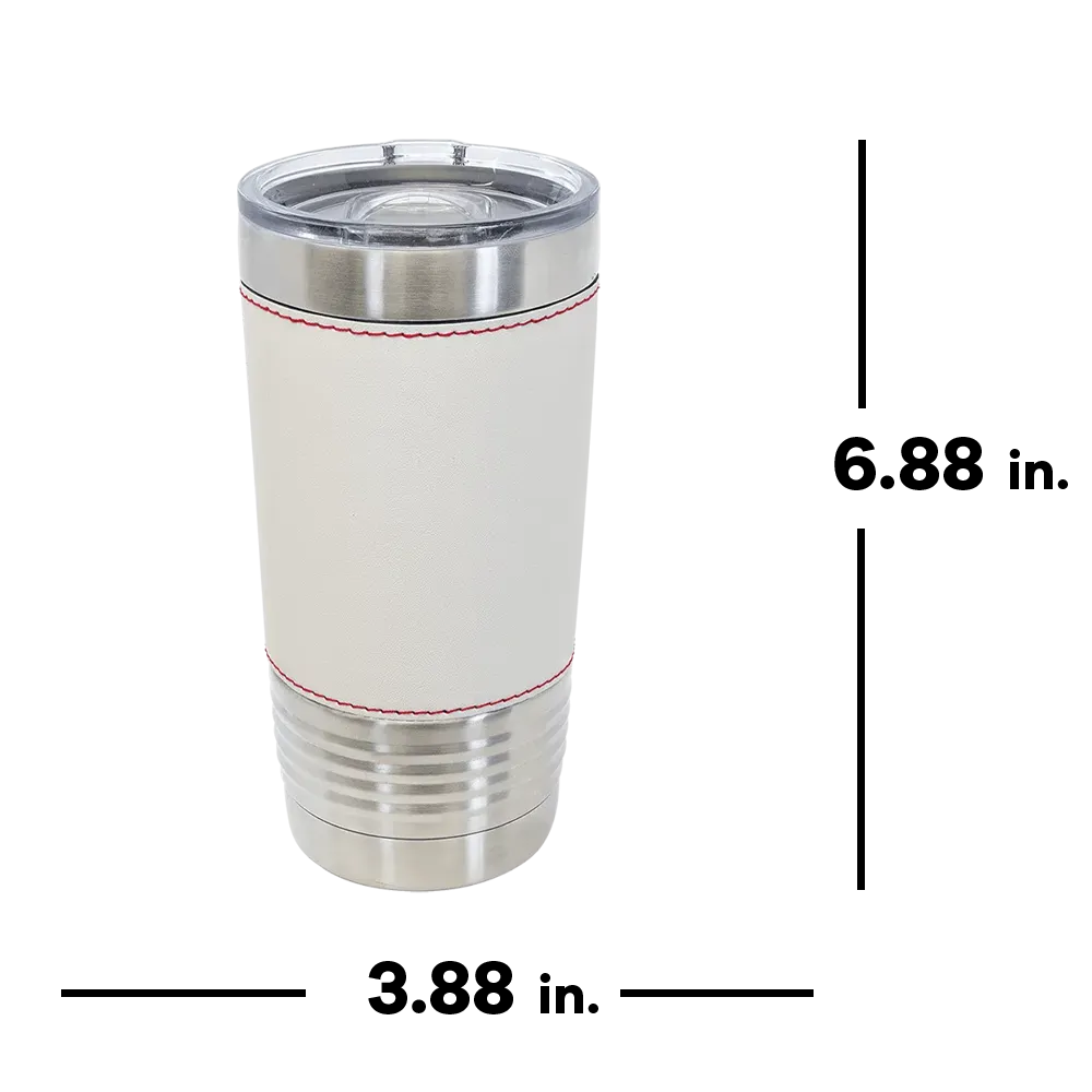 The Polar Camel Sport Tumbler is constructed in the classic 20 oz tumbler style with double-wall vacuum insulation that will keep your drink the ideal temperature for hours. Clearly see and easily sip from your tumbler with the BPA-free clear lid. Wrapped in laserable leatherette, showcase your customer’s logo on a variety of sport styles, including baseball, basketball, softball, and football. Comfortably travel with the spill-resistant slider lid and cupholder friendly base.