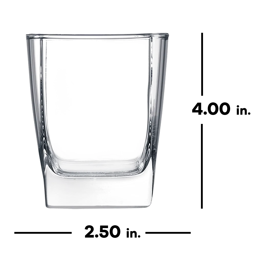 Enjoy a glass of whiskey or a double of your favorite cocktail with this unique glassware. Crafted with solid clear glass and square sides, this adds a different style to your barware collection. Ideal for promotional items, distilleries or gifts for any occasion.
