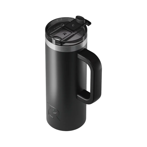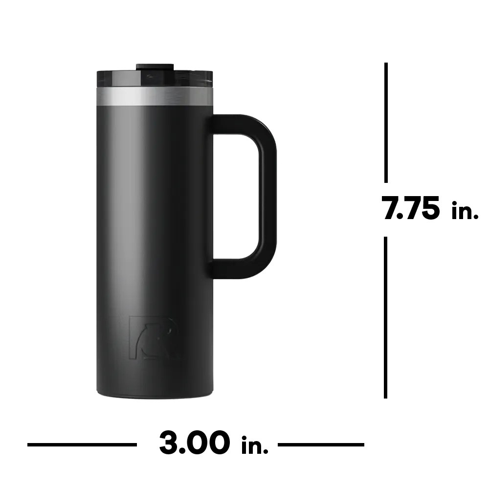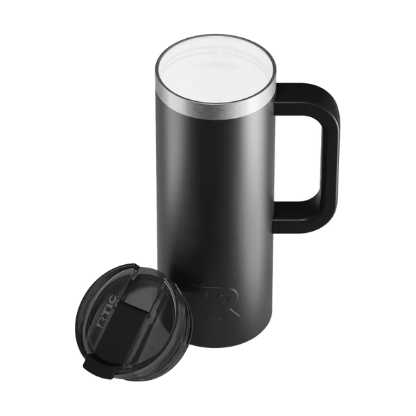 Combining the smooth taste of ceramic and durable stainless steel body, the RTIC Road Trip Travel Mug is perfect for caffeination on-the-go. The double-wall vacuum insulated stainless steel will keep drinks hot for 6 hours and cold 24 hours. Enjoy the pure taste of your favorite coffee, cold brews and teas with the ceramic-lined interior, providing a clean, non-metallic taste. The leak and spill-resistant lid uses dual threading, allowing for left or right handed drinking. Easily carry it with you everywhere with the large comfortable handle, take it with you in the car with the cupholder friendly base and quietly set it down with the built-in silicone coaster.