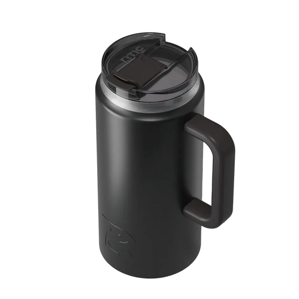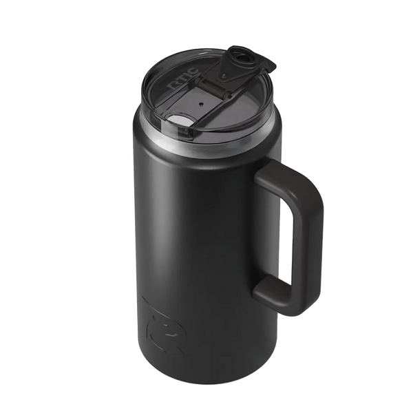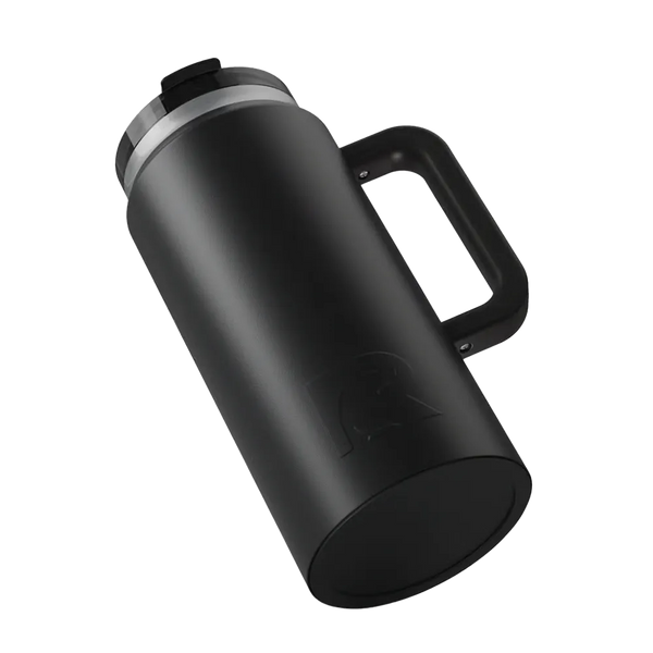 Combining the smooth taste of ceramic and durable stainless steel body, the RTIC Road Trip Tumbler is the most unique travel tumbler to hit the market. Now in a heavy-duty 64 ounces, the double-wall vacuum insulated stainless steel will keep drinks ice cold and retain ice 24 hours. The ceramic-lined interior provides a clean, non-metallic taste, won’t absorb any flavors like your coffee or tea and is easy to clean. The multi-function lid allows for two drink settings, open mouth or with a straw. When finished, close the locking tab or remove the straw for leak-resistant transportation. The leak and spill-resistant lid uses dual threading, allowing for left or right handed drinking. Easily carry it with you the large comfortable handle and quietly set it down with the built-in silicone coaster base.