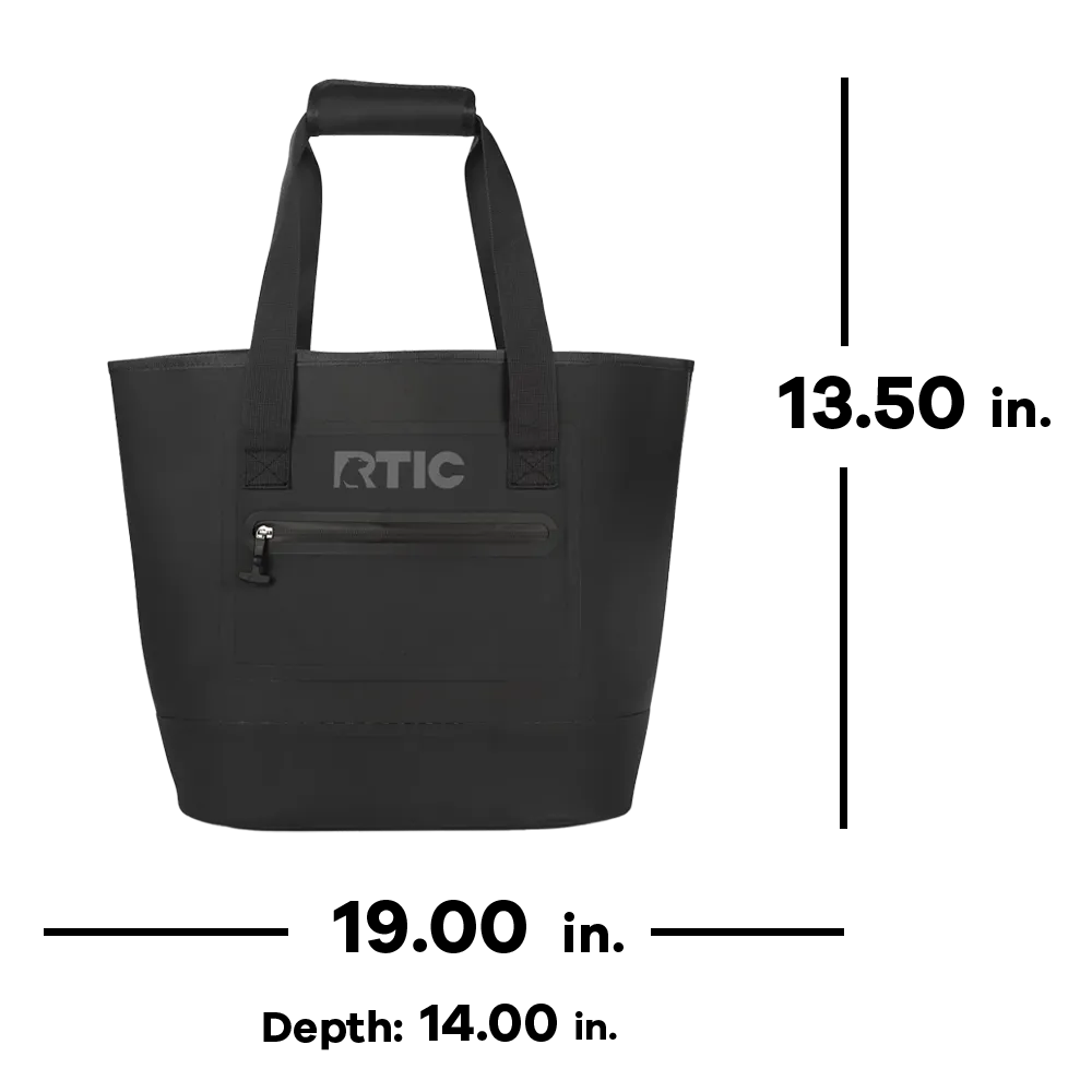 The small RTIC Ultra Tough Tote is perfect for all of your daily, outdoor adventures, from hitting the beach or park to your grocery runs or farmers market visits. Made with waterproof, puncture-resistant material this tote is easy to clean and stain and tear resistant. The EVA molded bottom keeps your tote upright and away from puddles and mud. The top buckle clips the two tote sides together for extra support. Use the interior and exterior water-resistant pockets to keep your wallet, keys, and other smaller valuables safe. Each tote pocket uses durable T-latch zippers for easy open and close.
