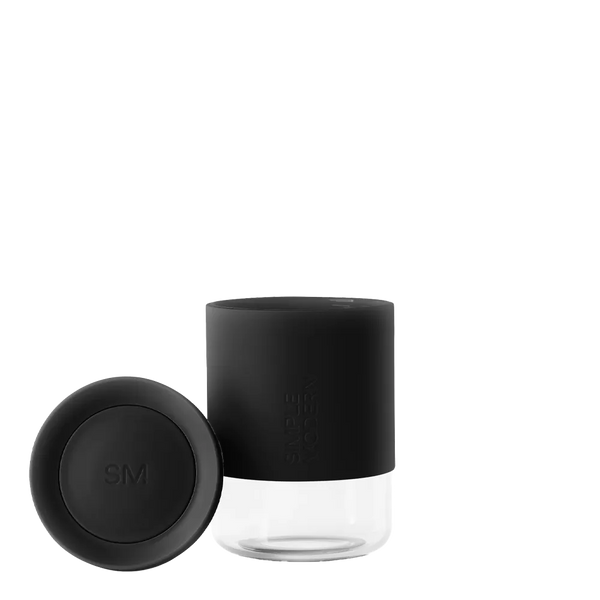 Refined and contemporary, the Simple Modern Clarity Cup pairs glassware with travel-friendly features for an effortlessly modern mug. Constructed with a durable clear glass vessel, enjoy pure, flavorful sips, and the internal threading of the lid offers a clean-lined design. Comfortably hold it with the removable silicone sleeve, and set it down without clanking with the silent silicone base. Drink from any angle with the 360° leakproof push-button lid, and when you’re ready to clean, pop the lid into the top rack of the dishwasher.