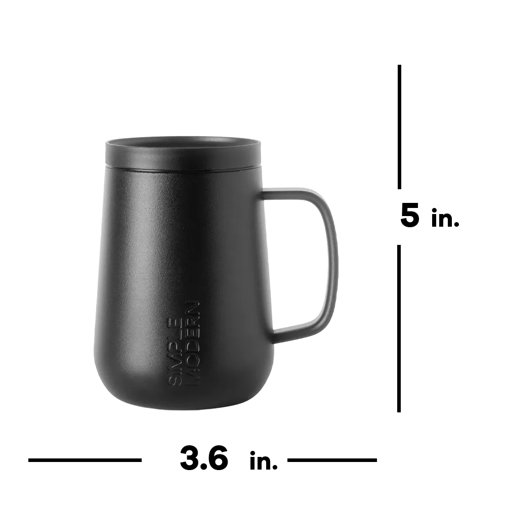 Enjoy an elevated sipping experience with the Simple Modern Voyager Coffee Mug with Handle Signature. The double-wall vacuum-insulated stainless steel will keep coffee piping hot or iced tea at the perfect temperature for hours. With a color-matched, ceramic-lined interior, every sip is true to taste. The unique push-button 360° lid lets you drink from any side and, when closed, is fully leakproof. Comfortably hold it with the side handle and quietly set it down with the silent silicone base.