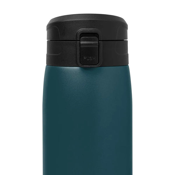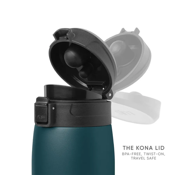 The Simple Modern Kona Travel mug is crafted with double-walled insulated stainless steel that keeps hot drinks like coffee and tea hot for 8 hours and cold for 24. The BPA-free twist-on lid has a lockable, push-button cover that snaps closed to prevent leaks and locks the lid back when open for easy drinking. The slim design is cupholder friendly and easy to grab-and-go.