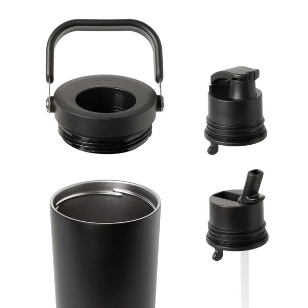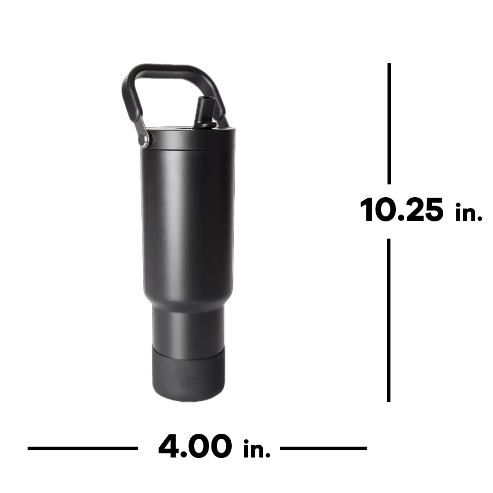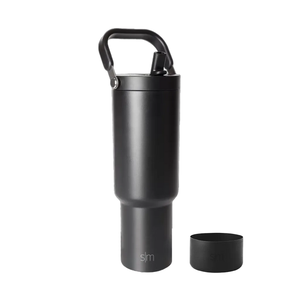 The Simple Modern Trek Pivot tumbler is constructed from double-wall vacuum insulated stainless steel that will keep drinks ice cold for hours. The all-new multi-use lid comes with two sip inserts, one folding-straw lid for easy hands-free drinking and a steady flow chug lid that locks into place when not in use. The cupholder friendly base is covered with a silicone boot to protect against dings and scratches. The wide pivot handle provides a comfortable hold, making it easy to grab and go.