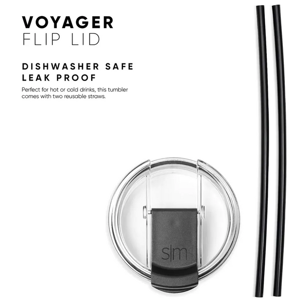 A sleek and modern tumbler ready to travel, the Simple Modern Voyager Tumbler with Clear Flip Lid is constructed with double-wall insulated stainless steel and will keep your drinks hot for 4 hours, cold for 16. Know exactly how much you have left with the clear lid that easily flips open when you’re ready to slip and is leakproof when closed. Easily take this with you anywhere with the cupholder friendly base. Top rack dishwasher safe.
