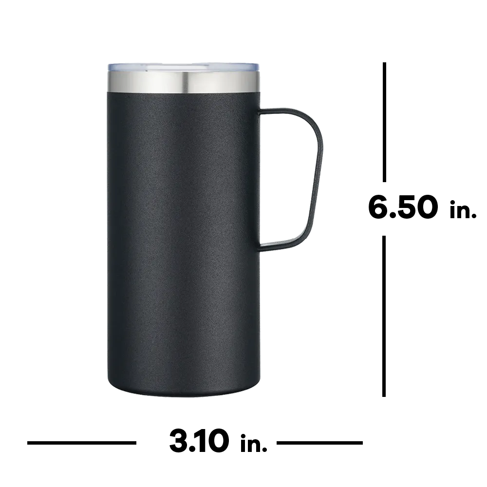 Your customers will absolutely love c ozying up with this sleek and chic tumbler mug. This mug can store 20 oz. of hot and cold drinks to keep them at their optimal temperatures for hours. Keep cold drinks at their coldest for 12 hours and hot drinks at th
