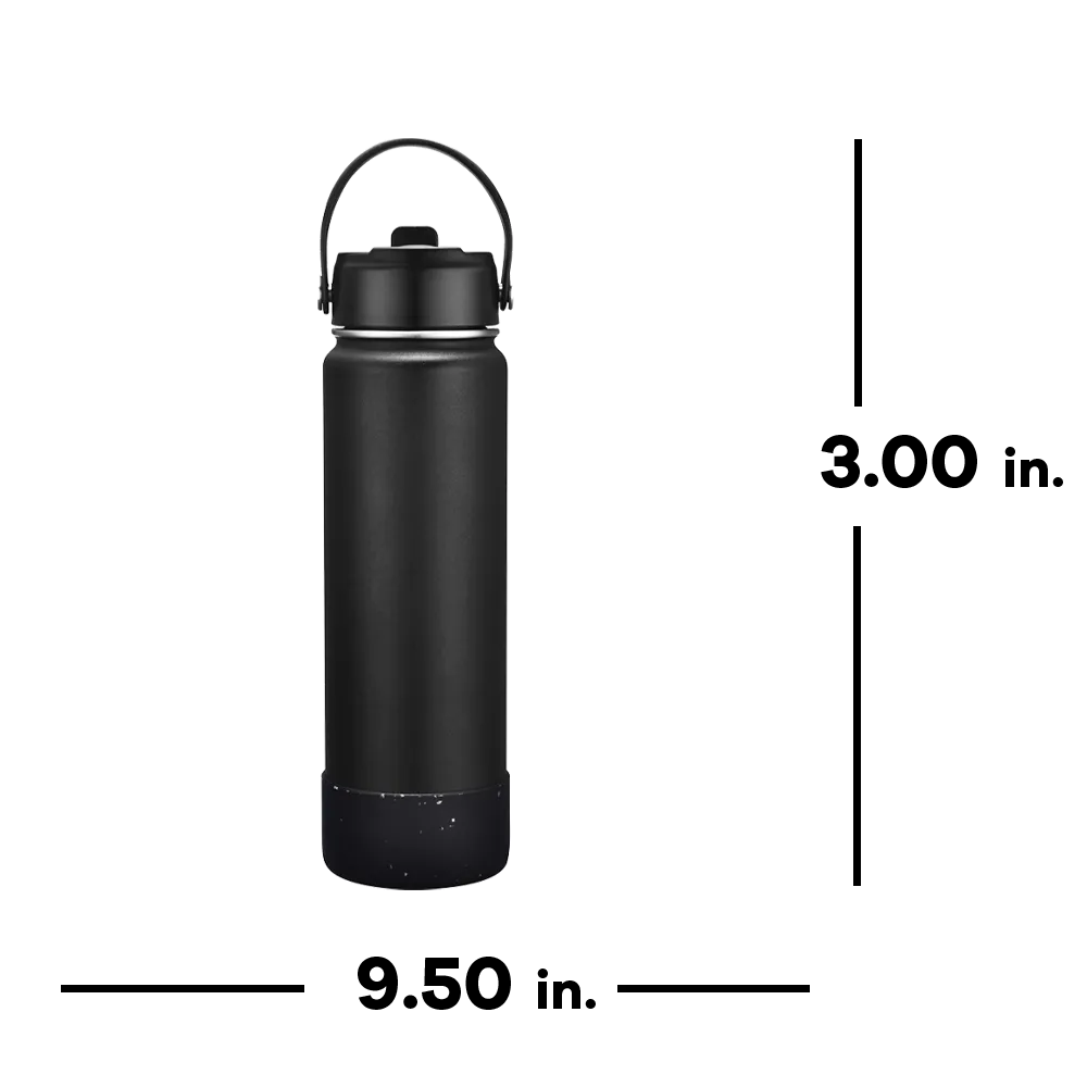 The 27 oz Water Bottle will keep your drinks cold up to 24 hours and hot up to 12. Made with stainless steel liner with copper coating and vacuum insulation, your drinks will stay fresh from sun up to sun down. The flip-top straw lid creates a smooth hydration experience and includes a carry handle for easy carry. This bottle includes a protective silicone boot that prevents scratching and slipping.