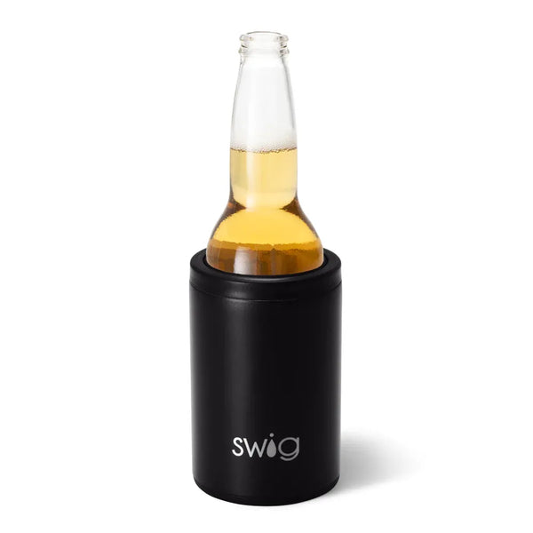 Thanks to Swig's triple insulation technology, this combination cooler keeps your can or glass bottle beverages cold for up to 12 hours (but it won't take you that long to finish one!). Simply twist off the top ring to insert your can/bottle, then twist the ring back on to secure and you're ready to enjoy!