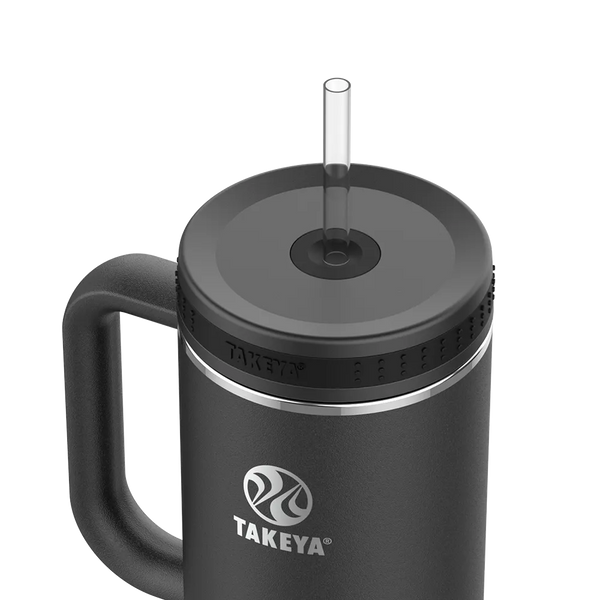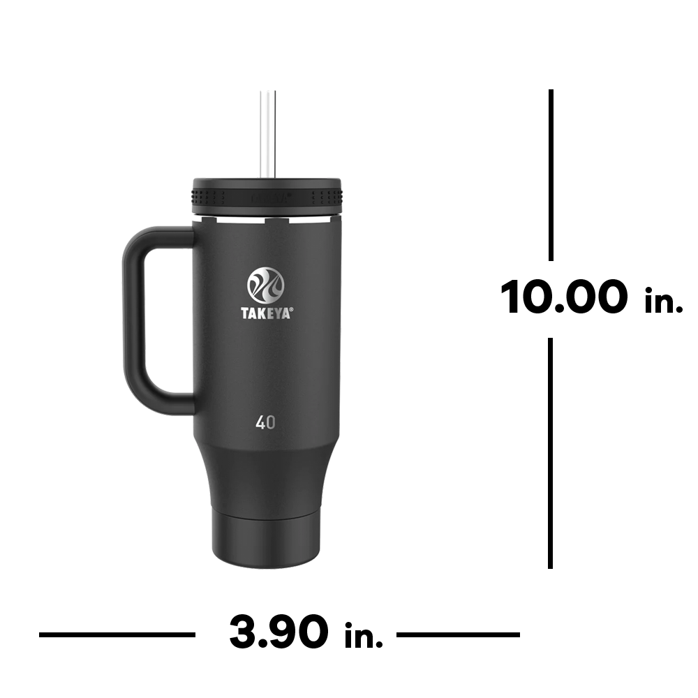 Ready to keep your water, smoothies and cold brews ice cold for 24 hours, the Takeya 40oz Insulated Straw tumbler is crafted with double-wall insulated stainless steel and sweatproof powder coating. Easily grip and twist off the ambidextrous lid and fill your tumbler with your drink of choice and ice through the wide mouth opening. The splash-proof gasket keeps every drop inside when you put in your straw. The cupholder friendly base fits in most cars and includes a protective bumper that you can remove when needed. Each tumbler comes with two Titan™ straws in standard or jumbo size. When you’re finished for the day, the lid and cup are dishwasher safe, making it easy to clean.