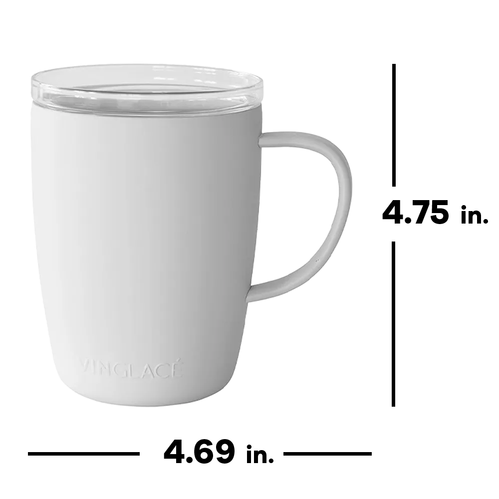 The Vinglacé Coffee Cup is constructed with double-wall vacuum insulated stainless steel for superior temperature retention. Enjoy the clean taste of your favorite coffee without any metallic taste with the removable glass insert. Sip on 12 ounces and securely keep every drop inside with the slider close lid. Glass insert dishwasher safe.