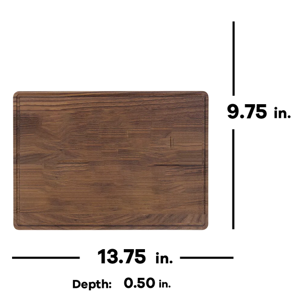 These hardwood walnut cutting boards with the drip ring helps keep messes to a minimum and nicely frames the personalization area. Perfect for housewarming gifts for realtors, corporate gifts for employee appreciation, or a promotional product, this gift will last through everyday use in the kitchen and displays beautifully when not in use.