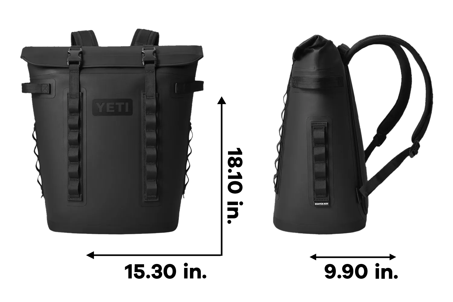 The YETI Hopper M20 Backpack Cooler is the perfect refreshment hauler for any day trip or weekend get together. Constructed with high-density fabric, the interior and exterior are puncture and UV ray resistant. The magshield opening uses powerful magnets to create a leak-resistant shield that stays open when you need it and easily closed with a gentle push. Keep your personal belongings safe in the deep front pocket and hitch on your important gear to the front grid loops. The closed-cell foam insulation will keep all of your drinks and snacks ice cold for hours and the leakproof welded liner prevents any water from soaking your pack. Comfortably carry your backpack cooler with the reinforced double-stiched handles and ergonomic straps that evenly distributes the weight.